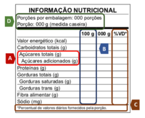 Outra alteração será nas informações disponibilizadas na tabela. Passará a ser obrigatória a declaração de açúcares totais e adicionados, do valor energético e de nutrientes por 100 g ou 100 ml, para ajudar na comparação de produtos, bem como o número de porções por embalagem.